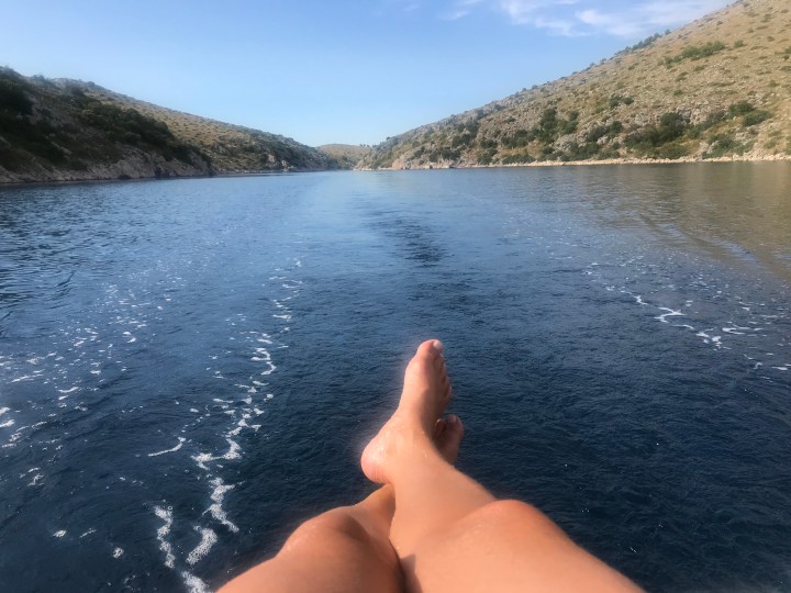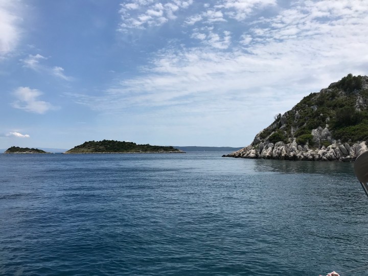 We’re just now stopping in a lovely little cove for a swim before we head out to Split to return the boat.