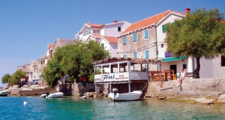 We docked our dinghy at a cute little restaurant with a patio dining room hanging over the water. We walked around town and asked one of the street merchants where to eat – and she recommended Toni, where we had tied up our dinghy, Konoba Toni.