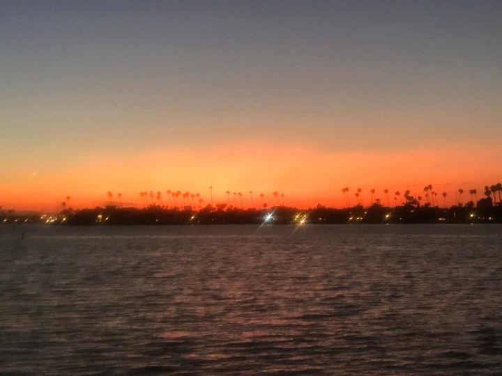 We arrived in Long Beach’s Alamitos Harbor while it was still light, then had dinner at a restaurant right near the dock.