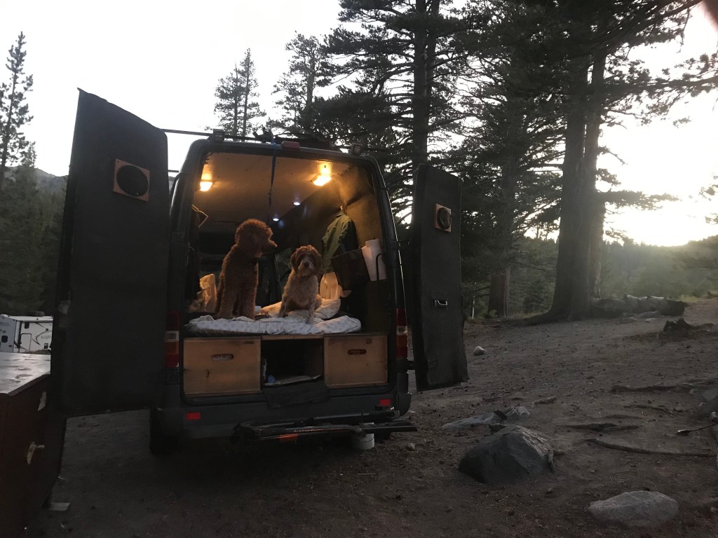 A few weeks ago we decided to road trip in our 2003 Sprinter van and go east through Mammoth on our way down to San Clemente to James’ fathers memorial service. Day one took us from home to Yosemite to camp for the night. I had a conference call at 6:30pm and was expecting cell service at the park entrance. But when we arrived we learned that cell coverage ended a few miles back. We had planned to stay high and head East to Toulumne Meadows to camp. But when we learned the only reliable cell service was in the valley we drove down to the valley in a spectacular moment of serendipity.